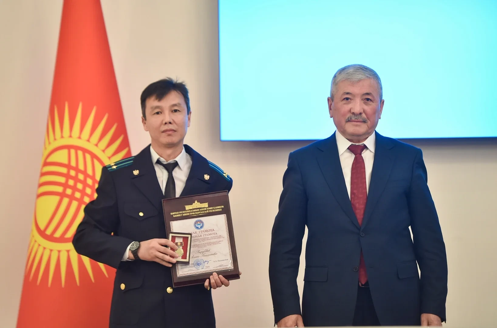 Также, за существенный вклад в развитие финансово-экономического потенциала страны и разработку системы «Салык Күзөт» были вручены Почетные грамоты Кабинета Министров Кыргызской Республики следующим работникам: