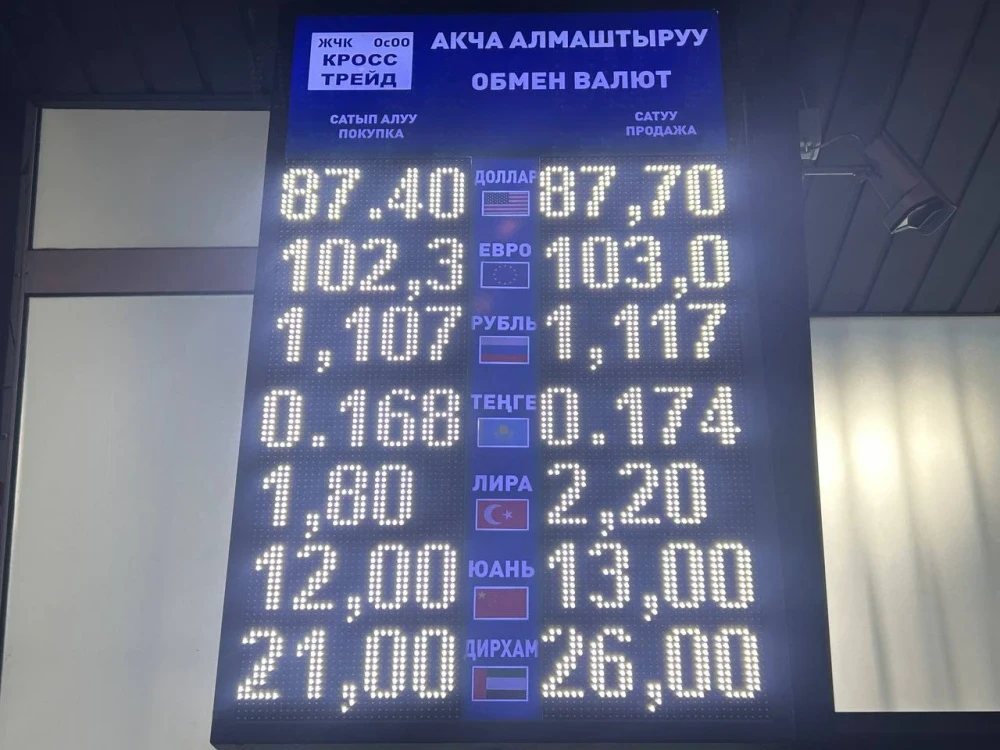 - На утро 26 декабря 2025 года курс доллара США в банках Кыргызстана составляет 87,2-87,3 сома (покупка) и 87,7-87,8 сома (продажа). Евро можно приобрести по цене 102-102,8 сома (покупка) и продать...