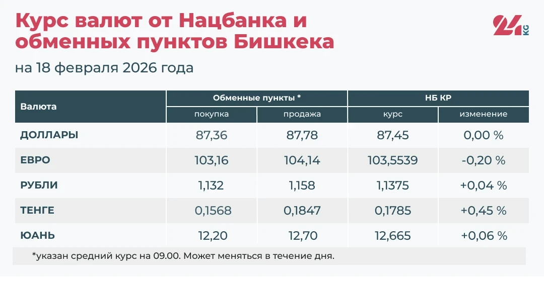 - Официальный курс НБ КР: 1,1375 сома (увеличение на 0,04 процента).