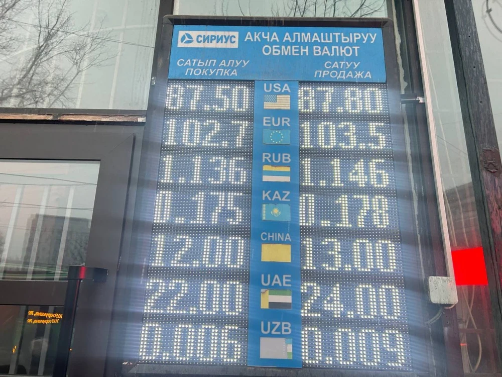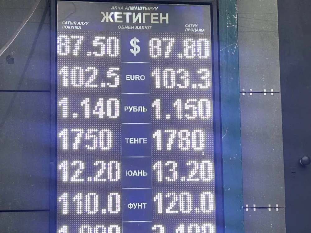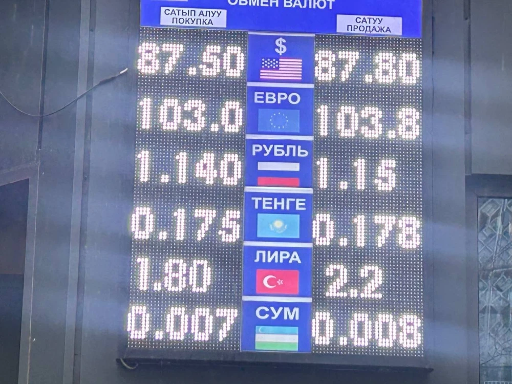 Курс доллара остается прежним: его стоимость при покупке составляет 87,5 сома, а при продаже — 87,8.