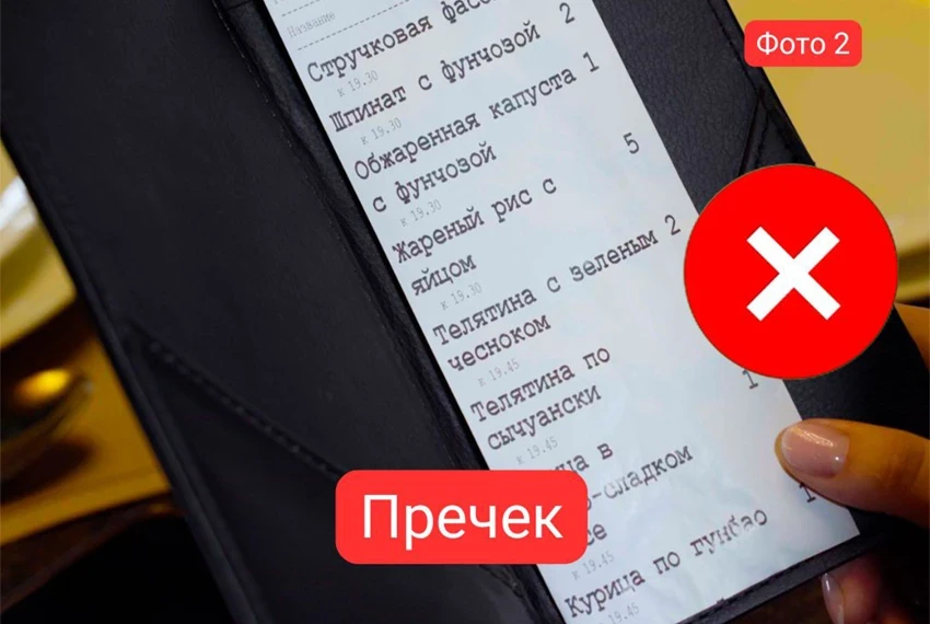 Согласно информации от ведомства, нередко вместо фискального чека клиентам выдается так называемый «пречек», который содержит наименования блюд и формируется в учетной программе заведения, или же предоставляется снимок экрана с данными о заказе.