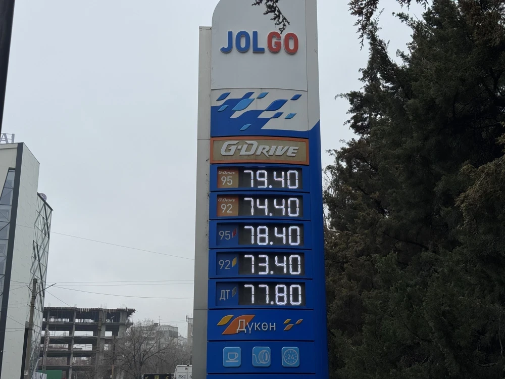 В настоящее время стоимость бензина АИ-92 составляет 74,4 сома за литр, АИ-95 — 79,4 сома, в то время как дизель немного подешевел до 77,8 сома.
