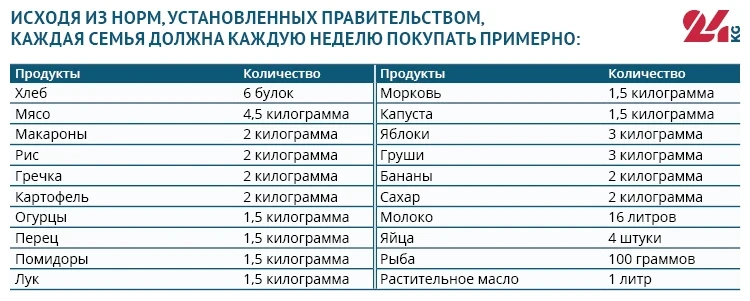 Важно отметить, что расчеты потребления продуктов являются приблизительными и основаны на утвержденных государством нормах. Учитывая, что не все люди едят одинаково и в одинаковых количествах, не следует рассматривать нашу корзину как окончательную истину. Это скорее социальный эксперимент 24.kg.