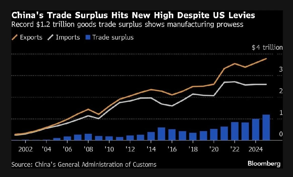 Китай достиг рекордного профицита торгового баланса в 2025 году — $1,2 триллиона