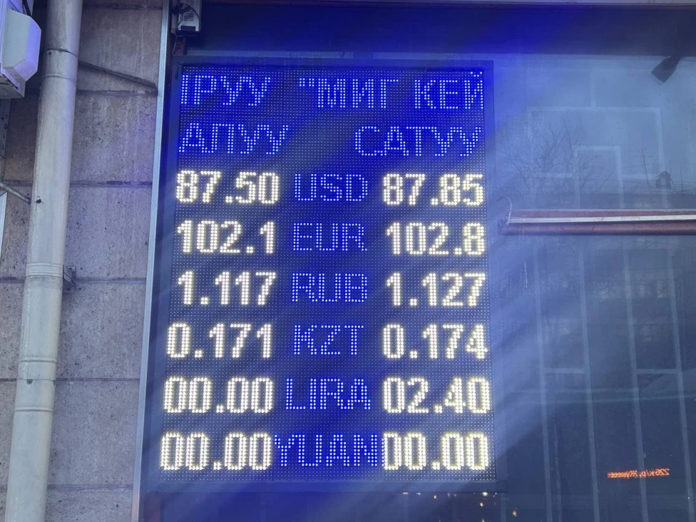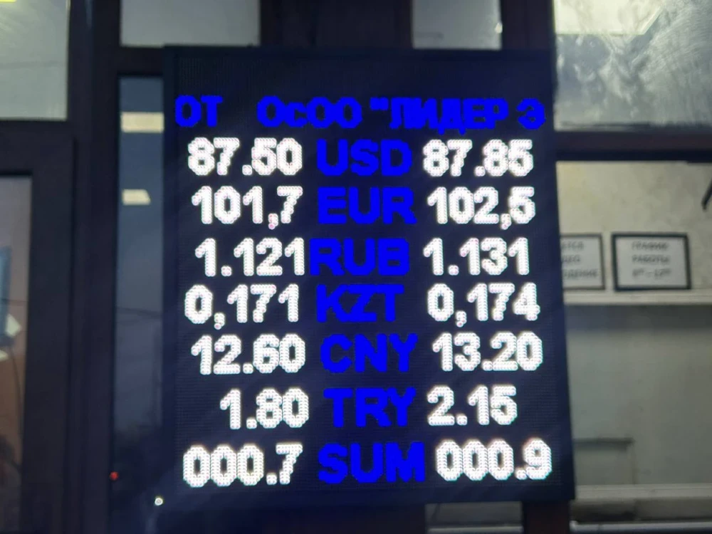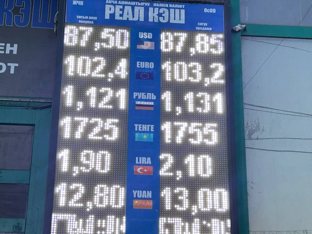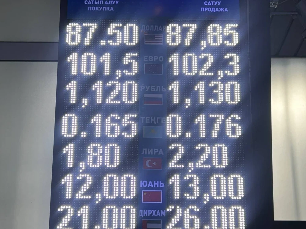 Курс доллара остался на уровне: покупка - 87,5 сома, продажа - 87,85.