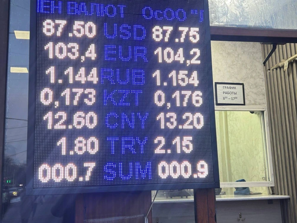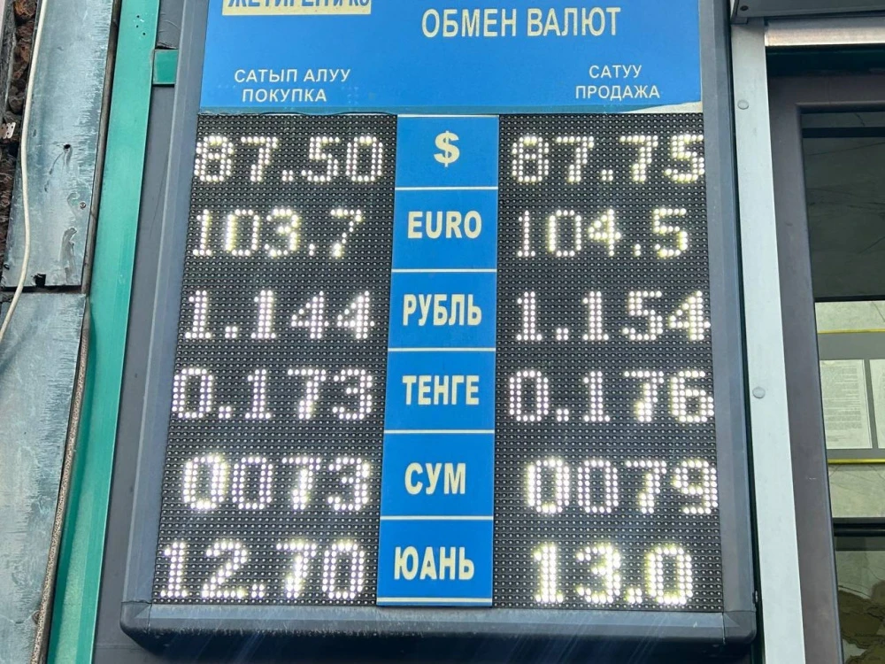 Курс доллара увеличился, и его покупка теперь стоит 87,5 сома, а продажа — 87,75.