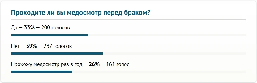 Among those who voted, a third reported that they underwent a medical examination before getting married, while slightly more respondents answered negatively.