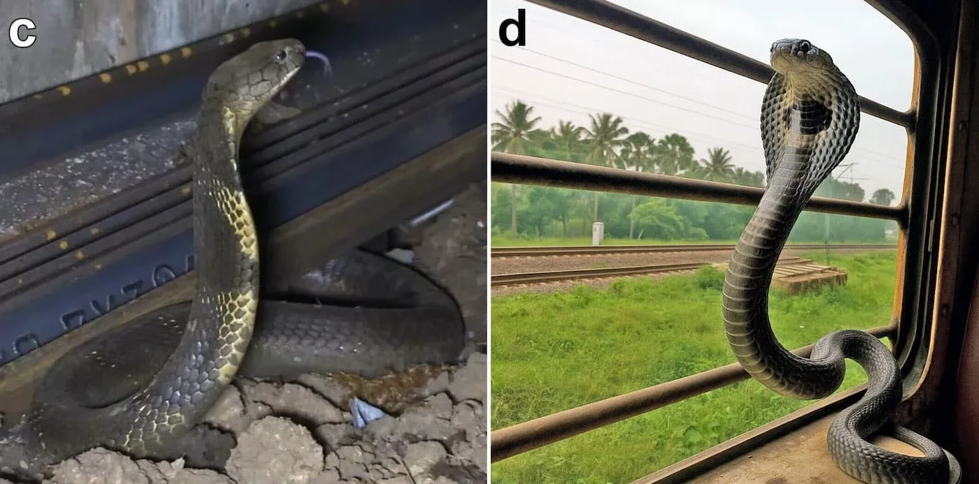 Подтверждением этой гипотезы стали наблюдения: одного из "пассажиров" нашли под рельсами на станции Чандор, а в другом случае очевидцы запечатлели кобру другого вида Naja naja, которая проезжала мимо в окне пассажирского вагона.