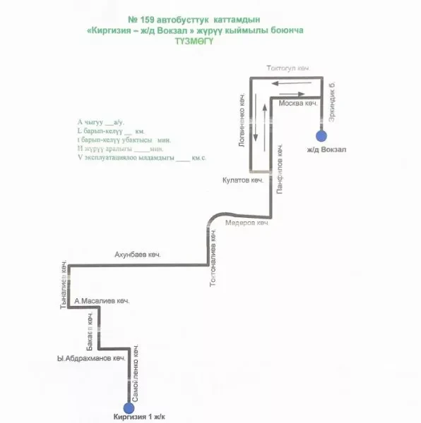 По информации мэрии, маршрут № 159 будет курсировать от жилмассива «Киргизия-1» до Железнодорожного вокзала согласно утвержденной схеме.