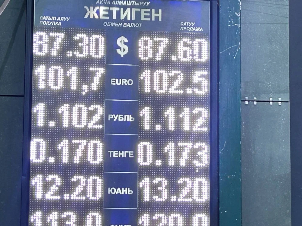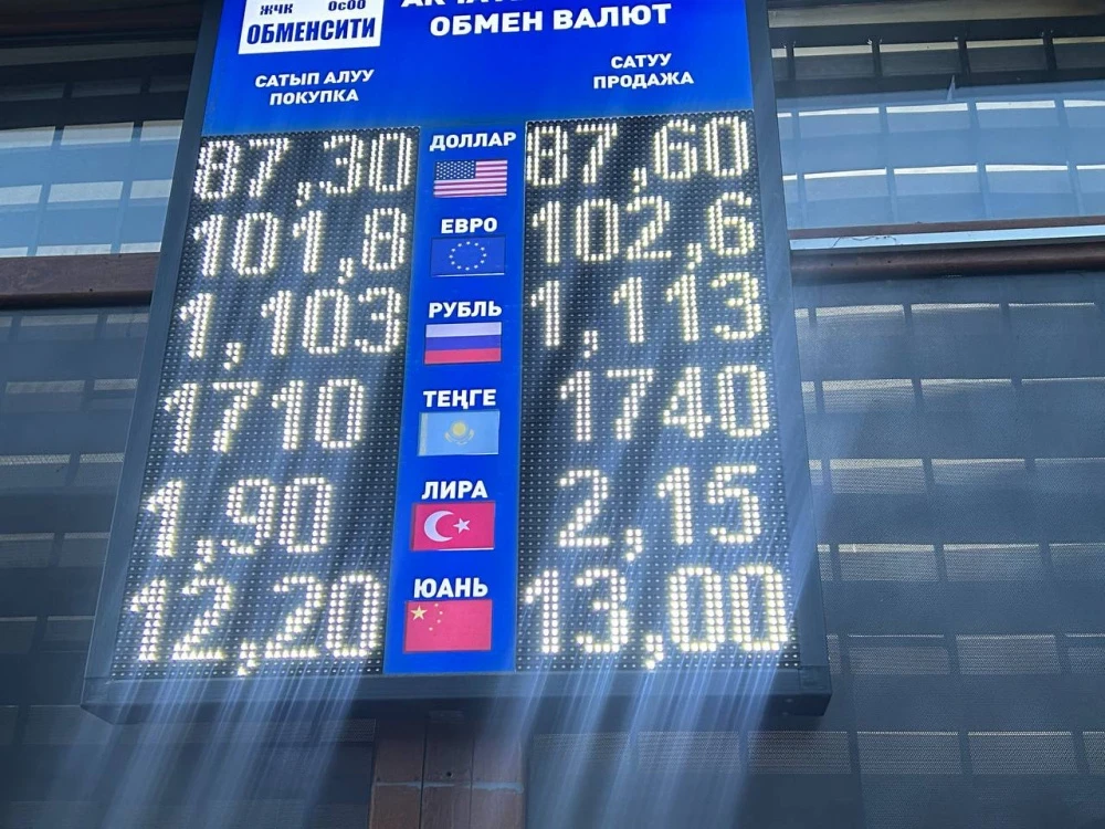 - 2025-жылдын 29-декабрында Кыргызстандагы банктарда АКШ долларынын курсу сатып алуу боюнча 87,1-87,3 сом, сатуу боюнча 87,55-87,8 сомду түзөт. Евронун баасы сатып алуу боюнча 101,9-102,8 сом, сатуу...