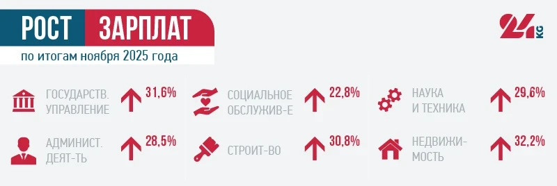Улуттук статистика комитетинин маалыматына ылайык, 2025-жылдын январь айынан ноябрь айына чейин орточо номиналдык эмгек акы бардык экономикалык ишмердүүлүк түрлөрүндө 2024-жылдын ушул мезгилине салыштырганда 19,1%га өскөн.