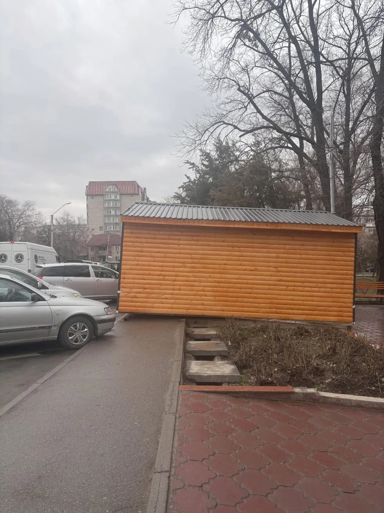 Бишкекте, Т.Молдо атындагы скверде, жөө жүргүнчүлөрдүн өтүүсүн жана парктын киришин жарым-жартылай тосуп калган жаңы павильон орнотулду. Бул сүрөттү шаар тургуну социалдык тармактарда жарыялады.