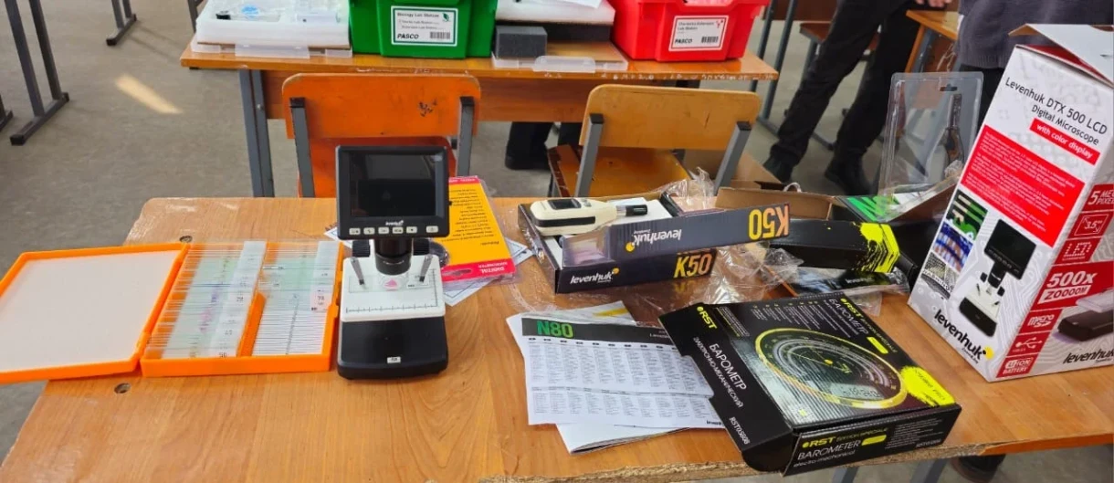 Учебно-лабораторное оборудование, полученное школами, включает 25 комплектов на каждую школу, что позволяет проводить исследования по различным предметам. В итоге было поставлено 5 500 комплектов оборудования, а также 220 интерактивных панелей и столько же ноутбуков.