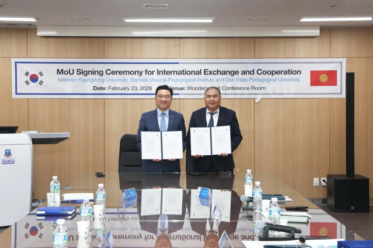 Ошский государственный педагогический университет имени А. Мырсабекова, а также Бишкекский музыкально-педагогический институт имени Т. Эрматова заключили трехстороннее соглашение о сотрудничестве с ключевыми вузами Кореи: Dong-eui Institute of Technology и Kyungdong University. Соответствующая информация была озвучена пресс-службой Министерства просвещения Кыргызской Республики.