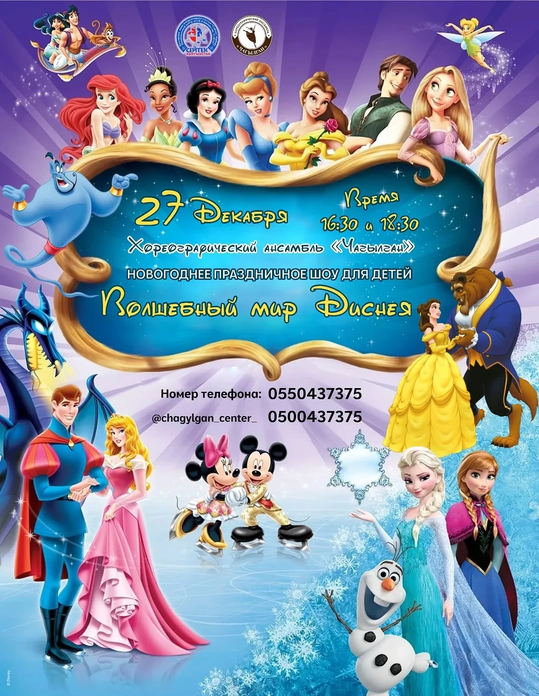 Детей ждут спектакли «Волшебный мир Диснея», «Новогодние приключения Алисы», «Путешествие Аладдина» и музыкальный концерт.