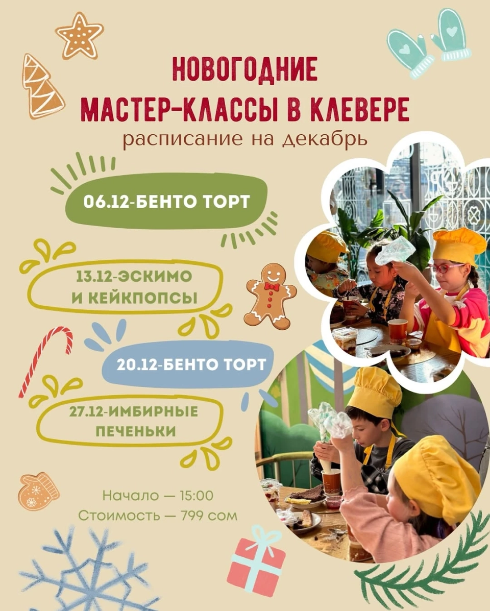 Дети смогут поучаствовать в мастер-классе, где они научатся готовить имбирное печенье. Регистрация по телефону 0558193333.