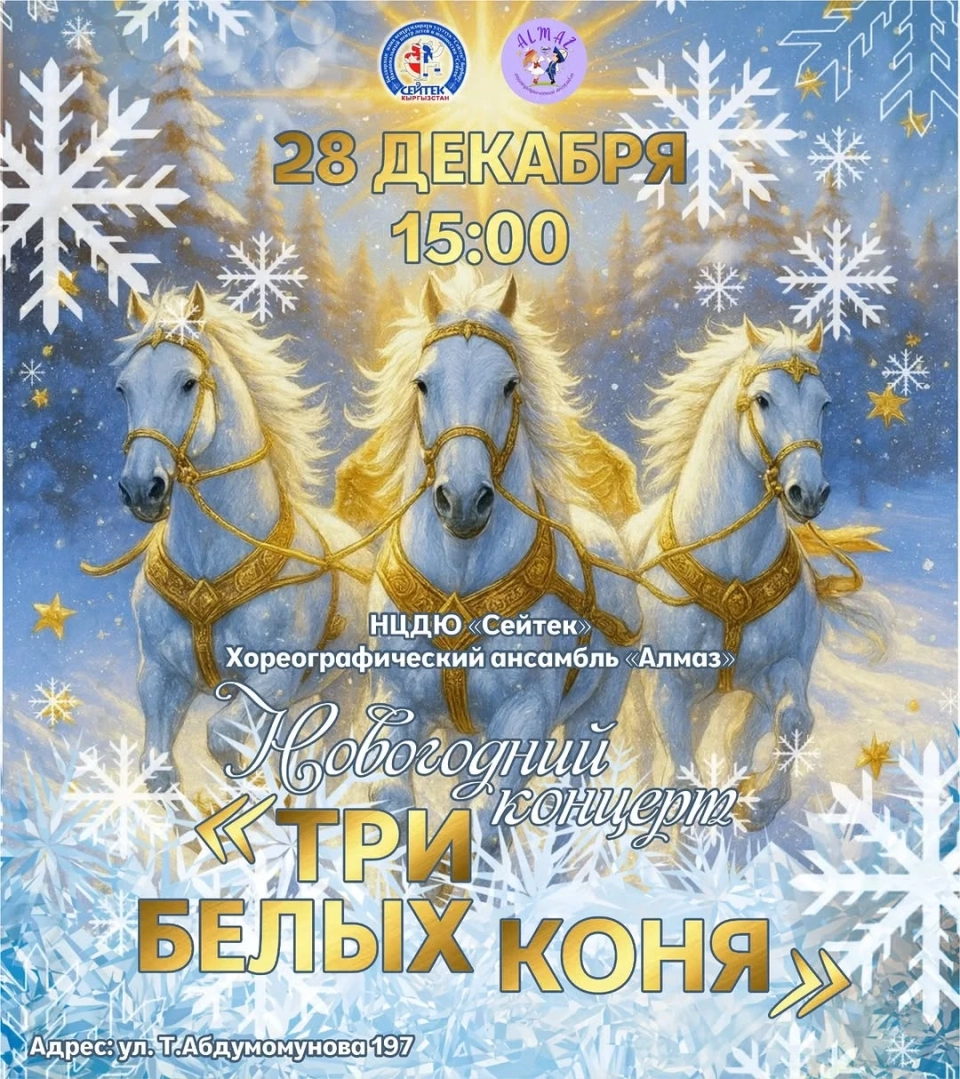 26 декабря в 19:00 на площади Ала-Тоо пройдет концерт с участием эстрадно-фольклорного ансамбля «Кыргыз-Руху». Данное событие стало возможным благодаря поддержке Управления культуры мэрии Бишкека....