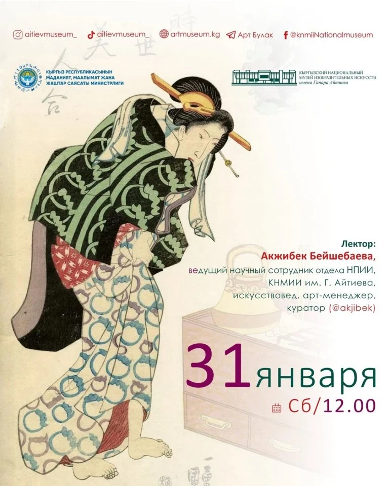 Темой лекции станет искусство Японии. Лектор — искусствовед и арт-менеджер Акжибек Бейшебаева.