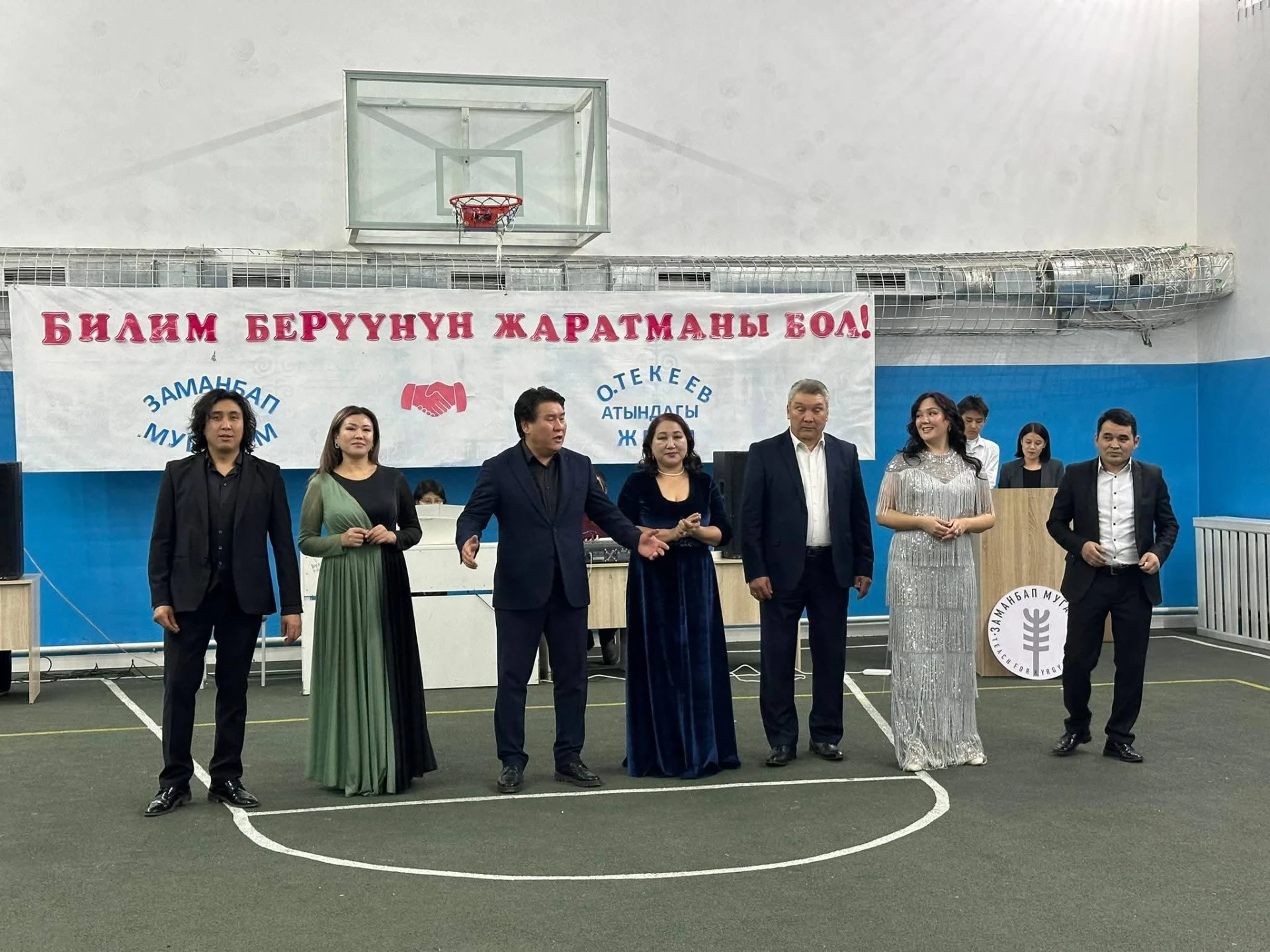 На сцене выступили народный артист КР Бактыбек Ыбыкеев, заслуженные артисты Айзирек Момунова, Айбек Саралаев, Нуржигит Асанов, а также лауреаты международных конкурсов Христина Севостьянова, Салима Маматова и Мурат Дербишалиев. Концертмейстером вечера была Нуржан Токтобекова.