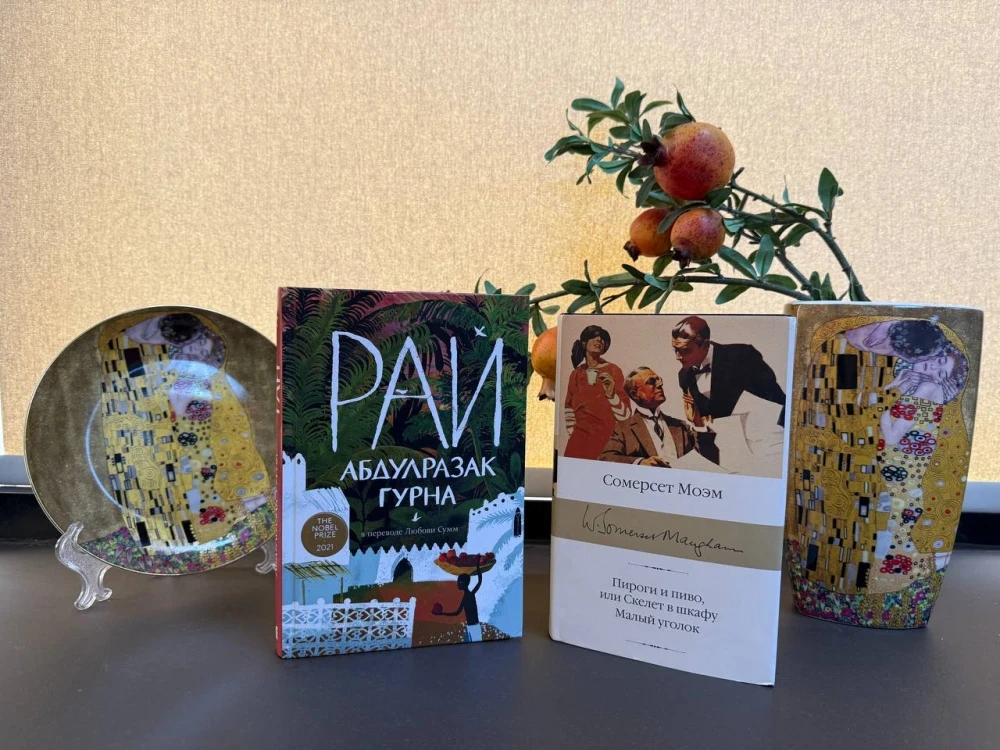 - В этом году я выбрала для Темира, нашего оператора, книги, основываясь на его литературных предпочтениях. Он очень внимательный и талантливый человек, поэтому я немного волновалась, как он отреагирует на мой выбор.Первая книга — это сборник рассказов Сомерсета Моэма, включающий "Пироги и пиво, или Скелет в шкафу" и "Малый уголок". Моэм мастерски сочетает иронию с глубоким пониманием человеческой природы, что всегда увлекает читателя.