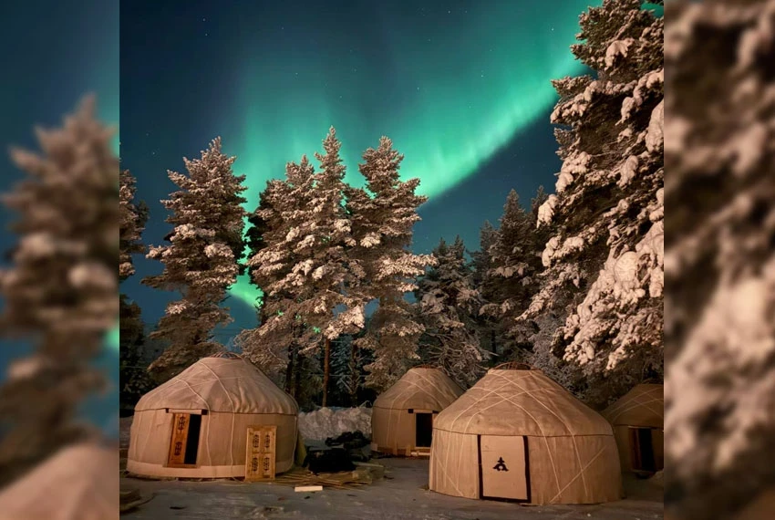 Рованиеми, город на Полярном круге, считается столицей финской Лапландии. Зимой здесь можно увидеть северное сияние, а летом наслаждаться полярным днем. Мы прибыли туда, чтобы установить юрты на Рождество — 24–25 декабря.