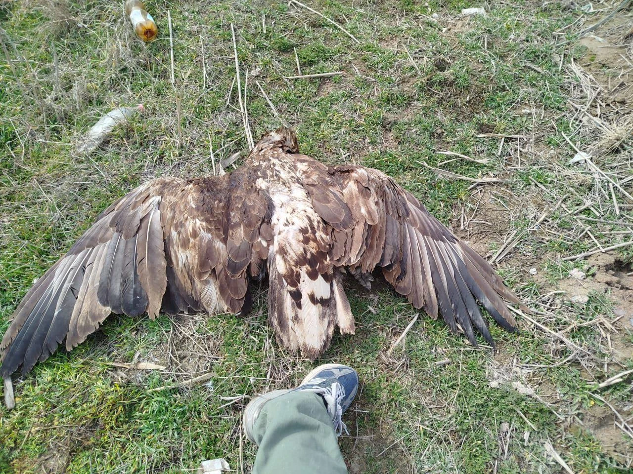 Первым, кто заметил птицу, стал бердвотчер Азамат, который незамедлительно уведомил группу «АСБК Орнитология». Важно отметить, что всего за день до этого здесь наблюдали живых орланов. В настоящее время в этом районе пара орланов-белохвостов начала гнездование.