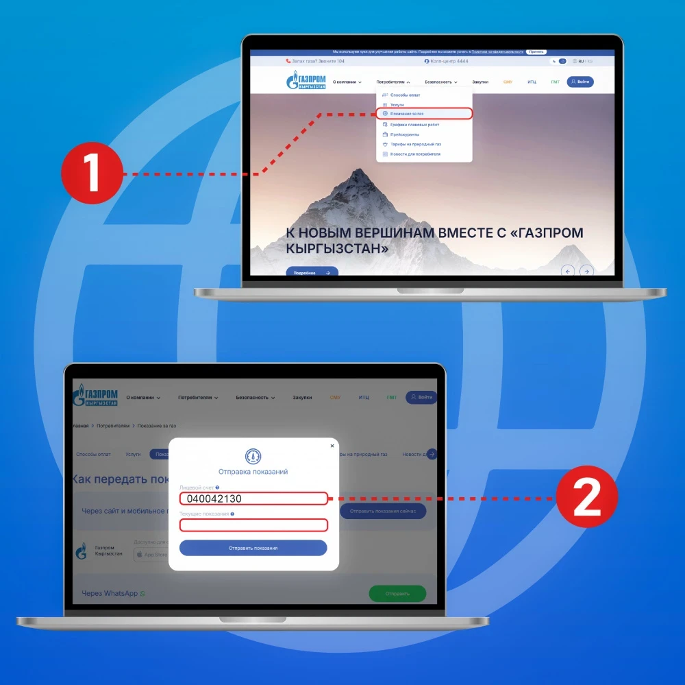 - в личном кабинете на сайте gazprom.kg;