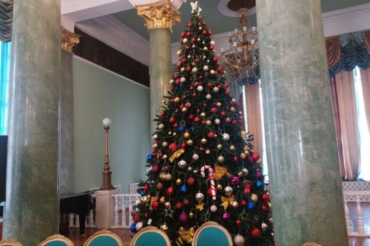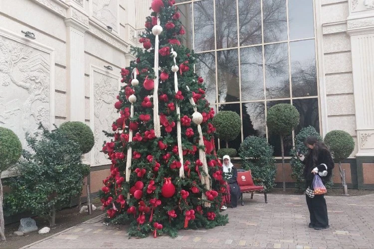 Южная столица, Ош, установила свою главную новогоднюю елку напротив мэрии. Она была украшена яркими желтыми и красными шарами различных размеров, которые сразу создают праздничное настроение для горожан и гостей.