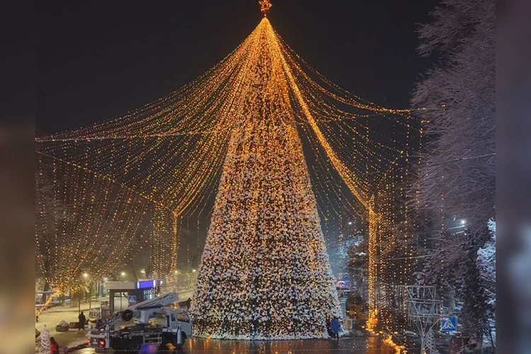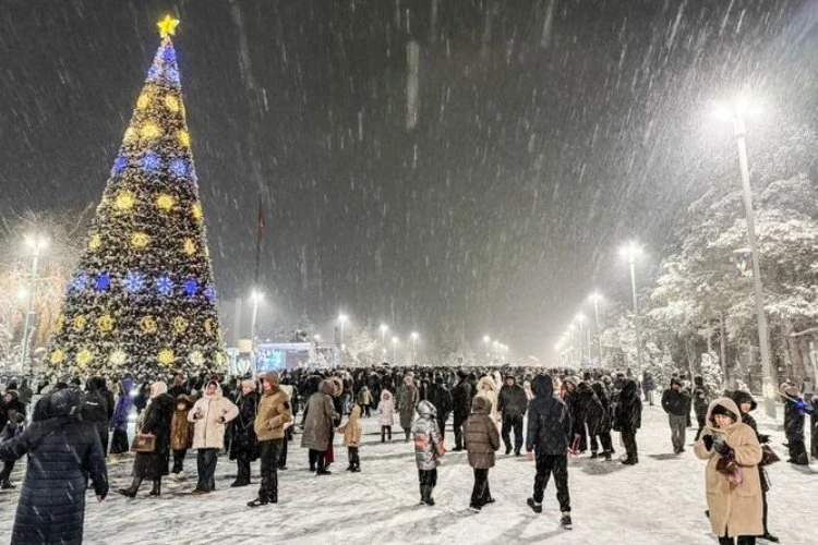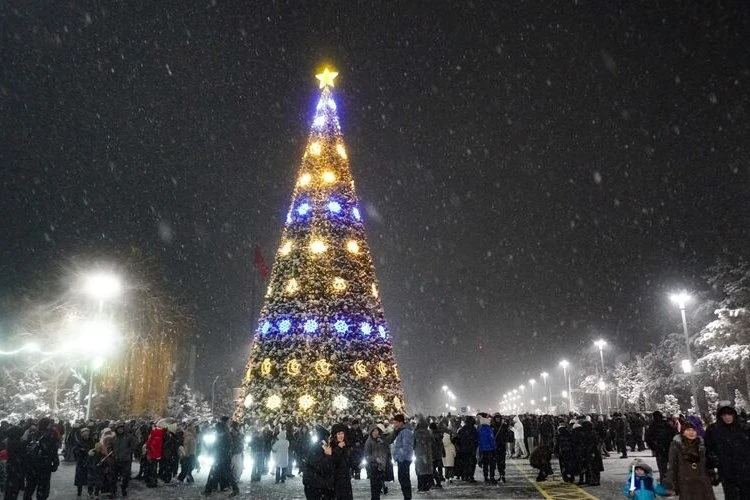 Каракол встретил зиму с размахом — новогодняя ель на главной площади зажглась на фоне снежного пейзажа. Праздник собрал множество горожан и гостей.