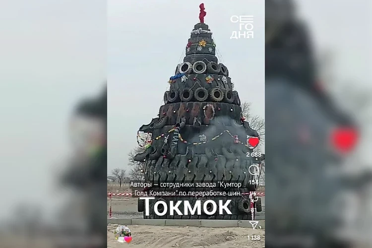 Токмок может похвастаться высотой своей елки в 32 метра. На ее оформление не потребовалось дополнительных расходов, так как использовались прошлогодние украшения.