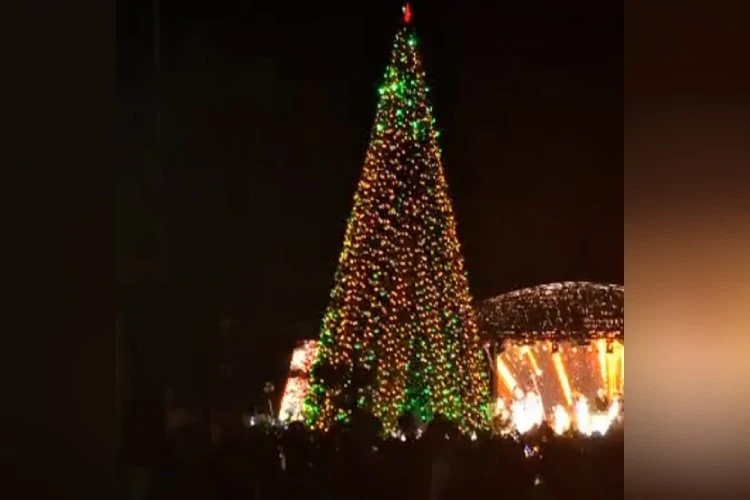 Фото из интернета В Манасе новогоднюю ель установили на площади «Азаттык» и украсили крупными яркими игрушками. На оформление было потрачено 800 тысяч сомов, а город также подготовил каток и Дом Деда Мороза.