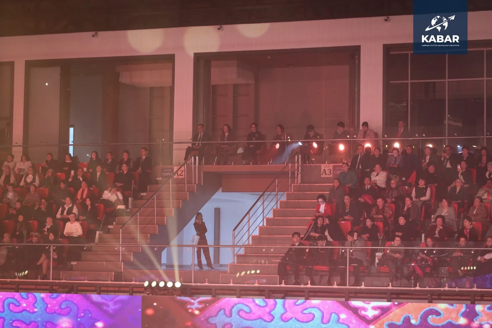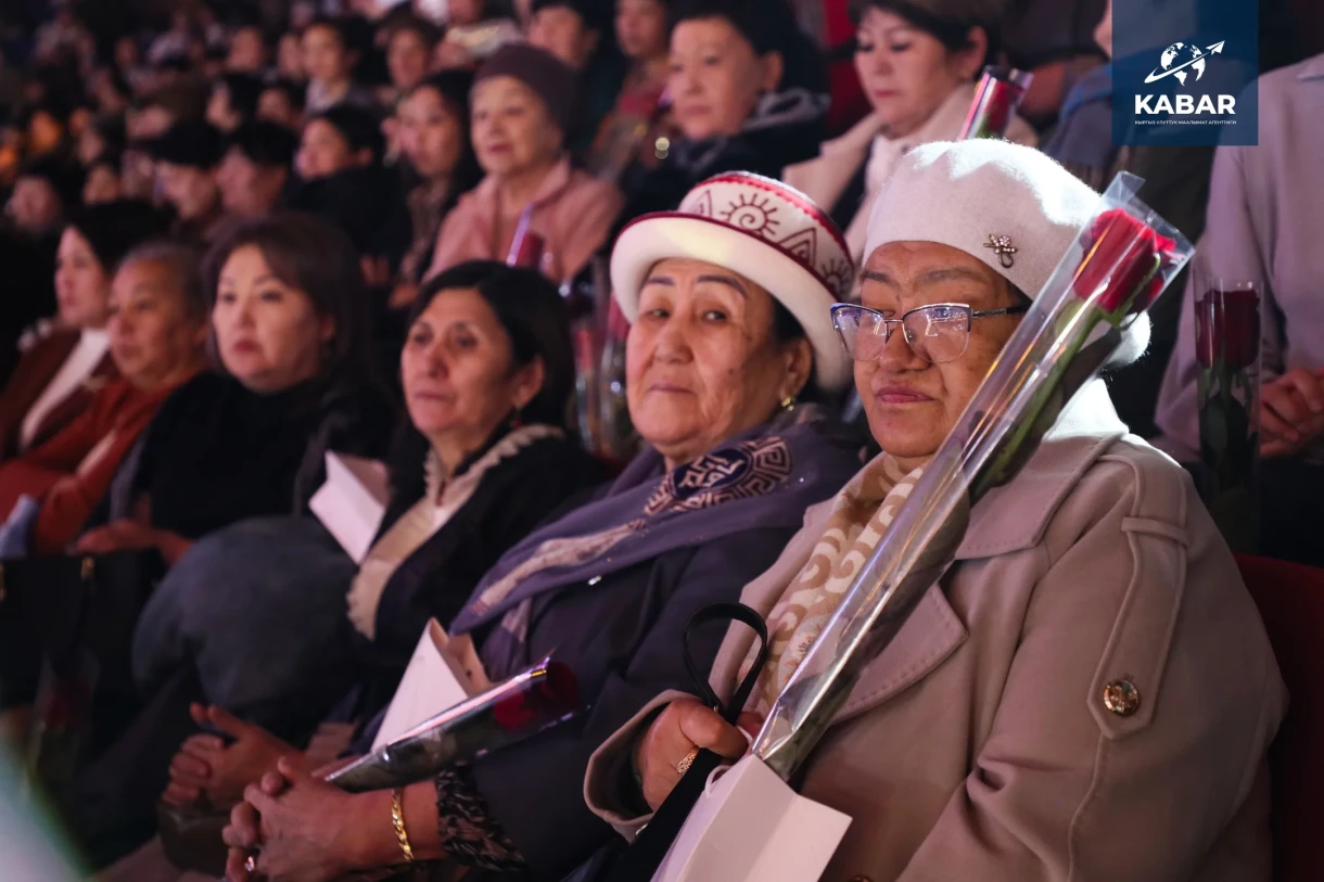 На сцене выступили почетные гости, включая первую леди Кыргызстана Айгуль Жапарову, мэра столицы Айбека Джунушалиева и министра труда, социального обеспечения и миграции Каната Сагынбаева. Также присутствовали женщины из различных сфер жизни столицы.