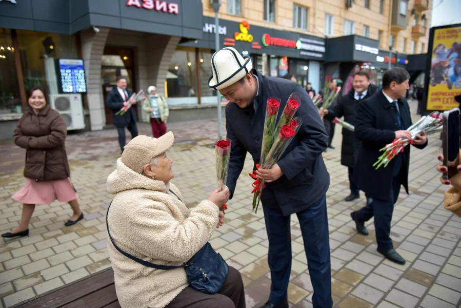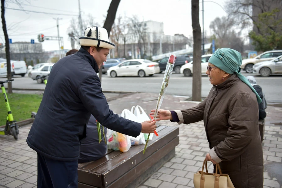 Этот неожиданный и трогательный жест превратил обычный день в настоящий праздник. Прохожие женщины, девушки и бабушки получили цветы и искренние слова благодарности, что вызвало улыбки на лицах многих из них. Множество бишкекчанок были приятно удивлены, а некоторые останавливались для того, чтобы поблагодарить и сделать памятные фотографии, согласно сообщению мэрии.