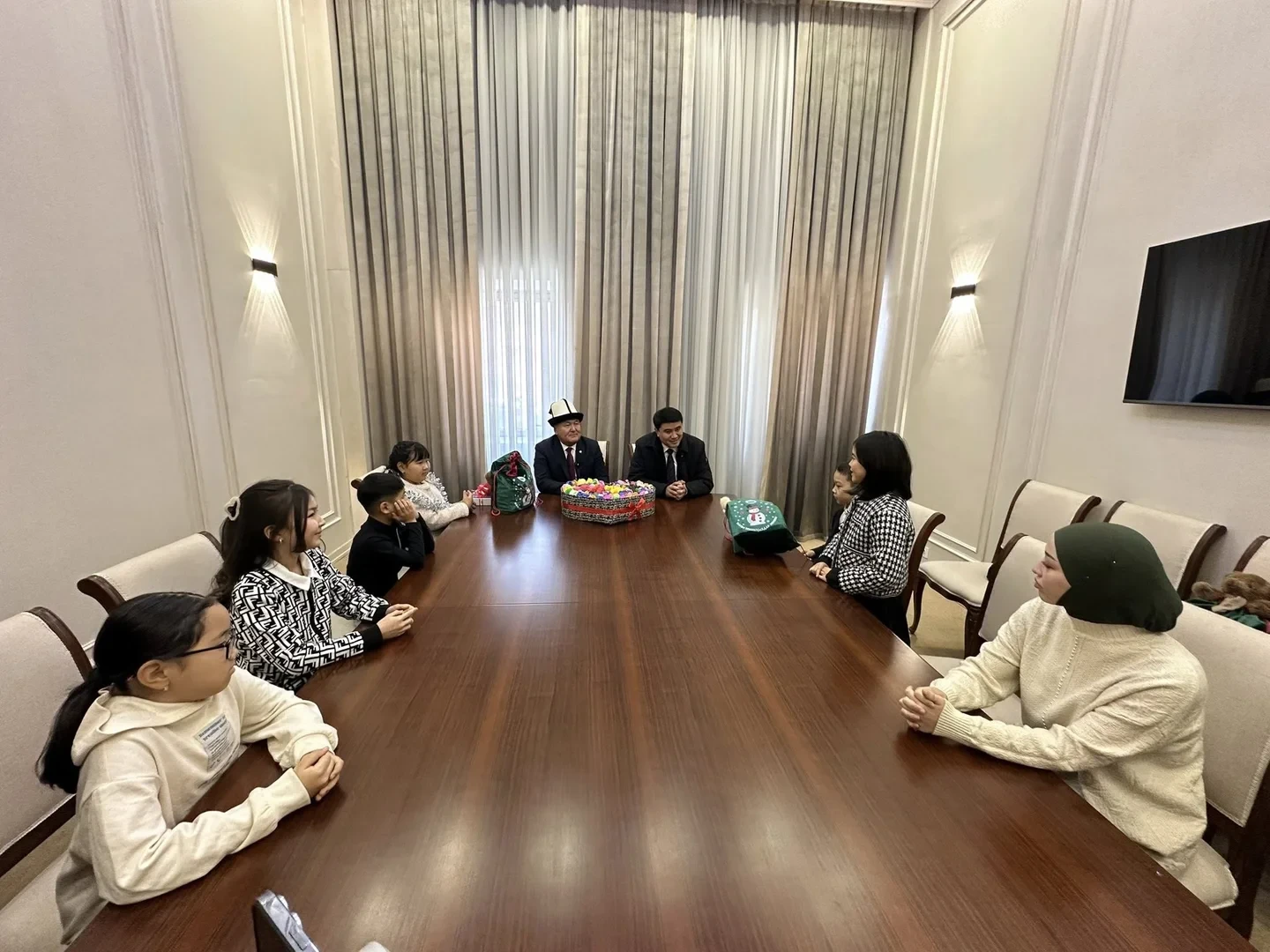 В Оше мэр Женишбек Токторбаев сегодня встретился с детьми, которые отправили ему письма с новогодними желаниями.