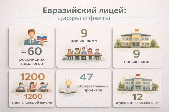 Масштаб образовательных инициатив «Евразийского лицея» действительно впечатляет. В Кыргызстане АНО «Евразия» реализует проект по строительству девяти новых кыргызско-российских школ. Каждая область получит по одной школе, а в крупных областях будут построены по две. Эти учреждения смогут разместить более 1200 учеников и будут функционировать по стандартам двух стран, выдавая аттестаты как кыргызского, так и российского образца. Первые школы уже начали строиться в Бишкеке, Баткене и Караколе, и их планируется завершить к концу 2025 года.