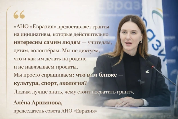 На этой основе и была создана новая гуманитарная инициатива в Кыргызстане — деятельность российской автономной некоммерческой организации «Евразия». В 2024 году Кабинет Министров Кыргызской Республики заключил соглашение с АНО «Евразия» о поддержке множества масштабных проектов в области образования, культуры и молодёжной политики.