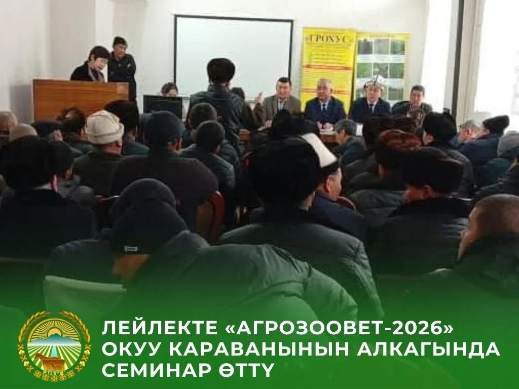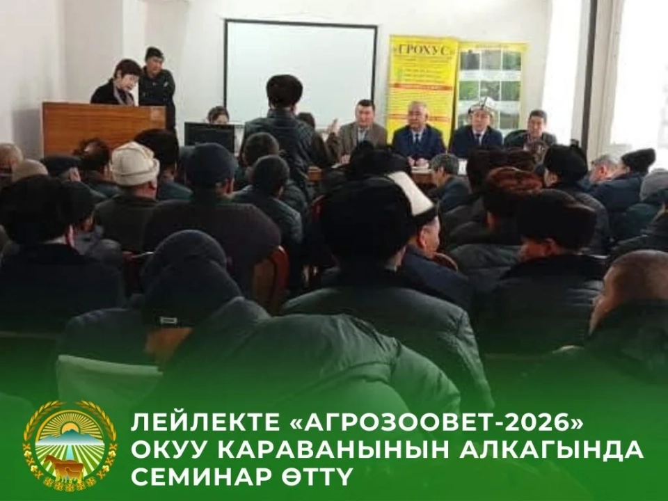 17 января в Лейлеке, на базе районной государственной администрации, прошел обучающий семинар в рамках каравана «АгроЗооВет–2026». Это мероприятие было организовано Министерством водных ресурсов, сельского хозяйства и перерабатывающей промышленности Кыргызской Республики.