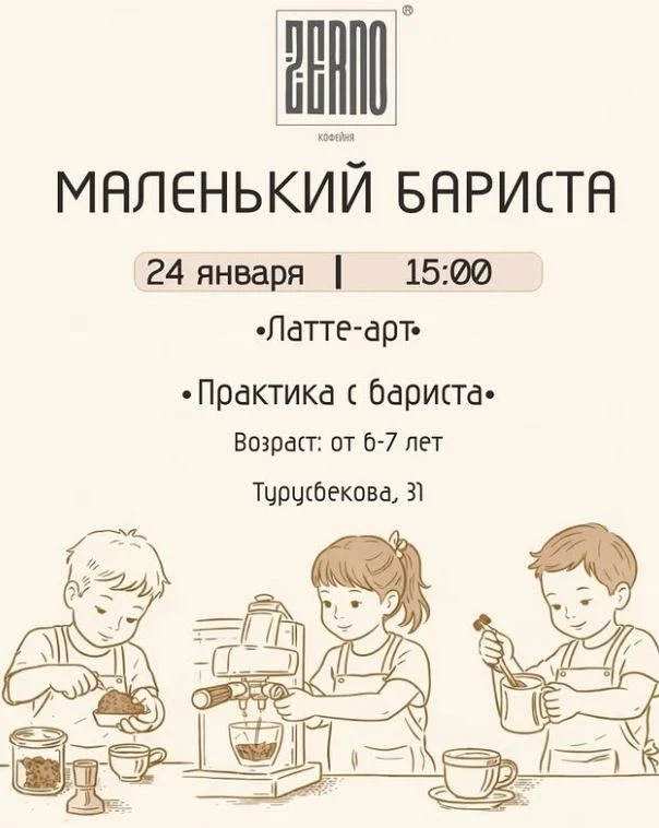 На занятии дети узнают о профессии бариста и создадут свои собственные рисунки из молока и кофе.