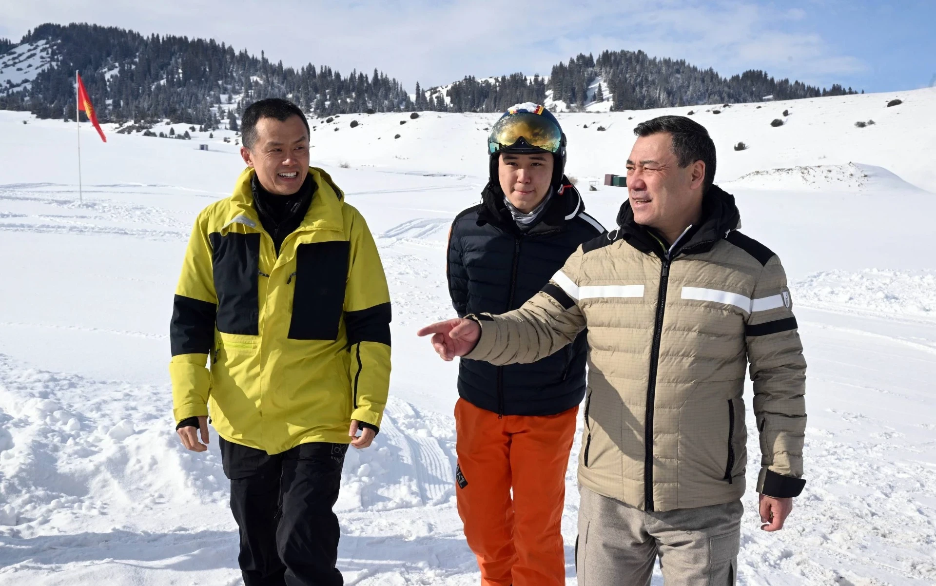 В Жыргалане Садыр Жапаров и Чанпэн Чжао покатались на лыжах в режиме фрирайд