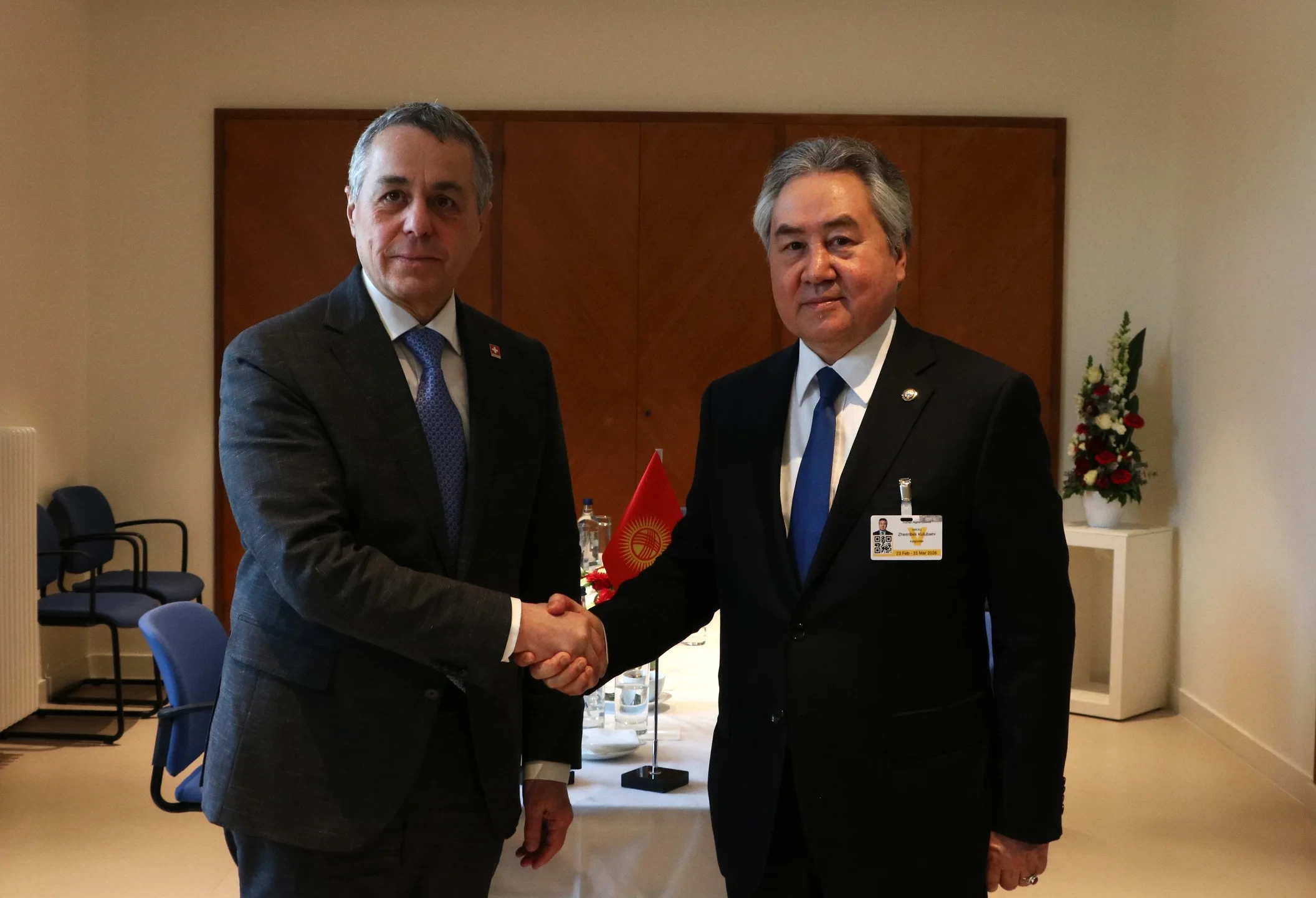 23 февраля 2026 года в Женеве состоялась встреча Жээнбека Кулубаева, министра иностранных дел Кыргызской Республики, с Иньяцио Кассисом, главой Федерального департамента иностранных дел Швейцарии. Эта встреча прошла в рамках высокого уровня 61-й сессии Совета ООН по правам человека, как сообщает пресс-служба МИД КР.