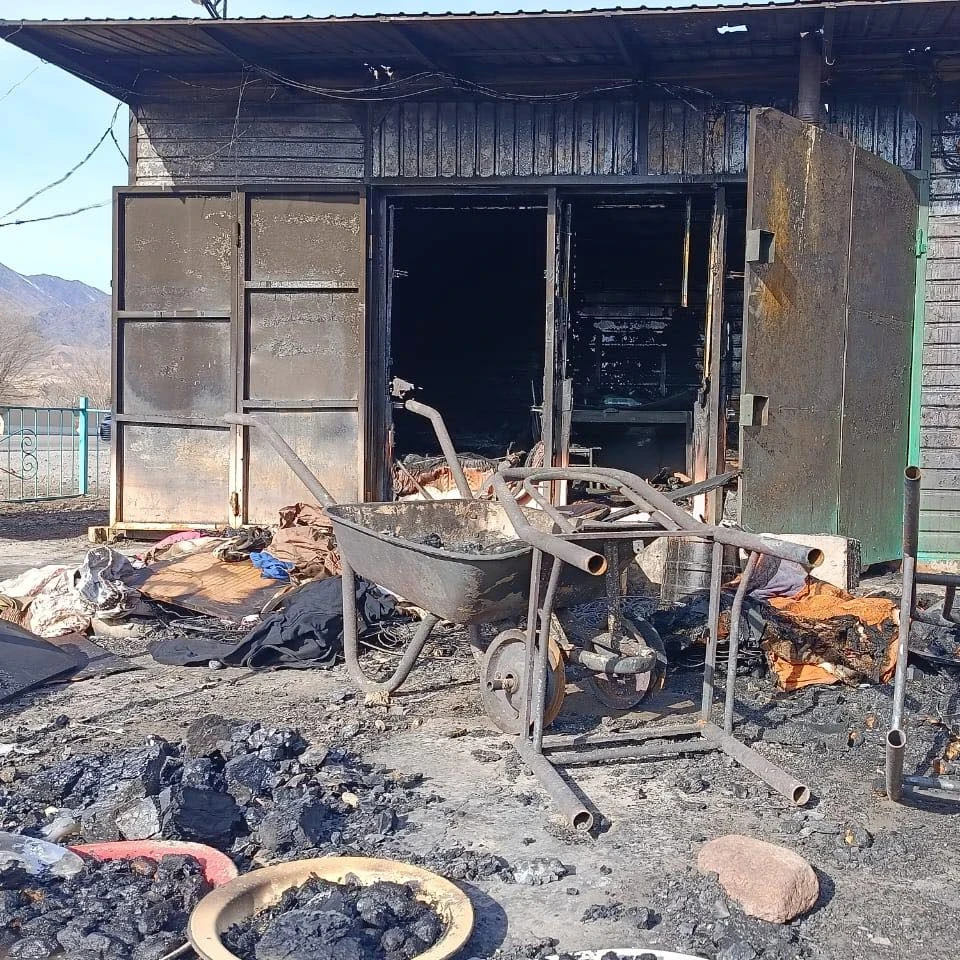 Предварительные данные указывают на то, что пламя охватило площадь около 2 гектаров, в результате чего сгорели четыре юрты и два металлических торговых киоска, находившихся вдоль дороги.