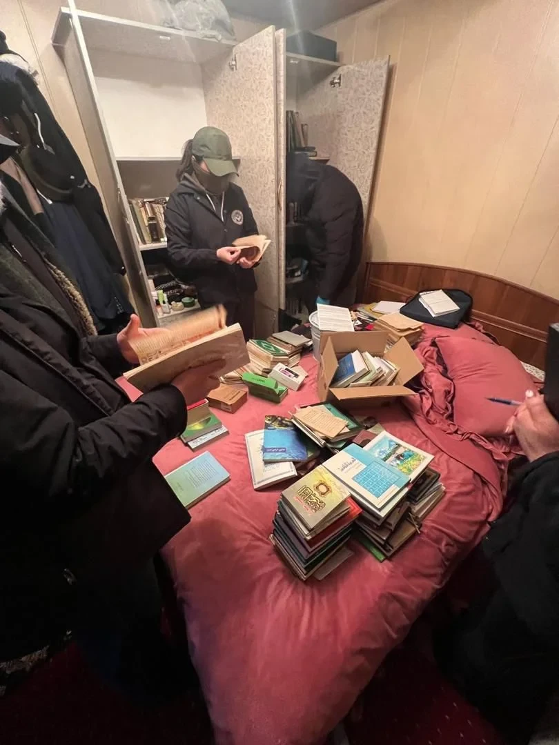В результате обысков были изъяты 217 предметов, относящихся к делу, среди которых: 75 книг, 14 мобильных телефонов, 18 тетрадей, 86 DVD-дисков, 4 планшета, 1 ноутбук, 2 SIM-карты, 14 паспортов граждан РФ, 1 печать, 1 видеокассета и 1 банковская карта «Бакай Банк».