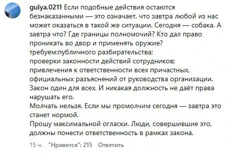 - «Если такие действия остаются безнаказанными, завтра любой из нас может оказаться в подобной ситуации. Сегодня это собака, а завтра кто?» — пишут в соцсетях.