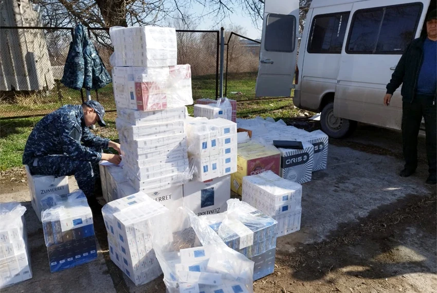 Согласно информации ведомства, в ходе рейда в селе Бирдик сотрудники ГНС обнаружили автомобиль марки Mercedes-Benz Sprinter, который осуществлял перегрузку табачных изделий в другое транспортное средство.