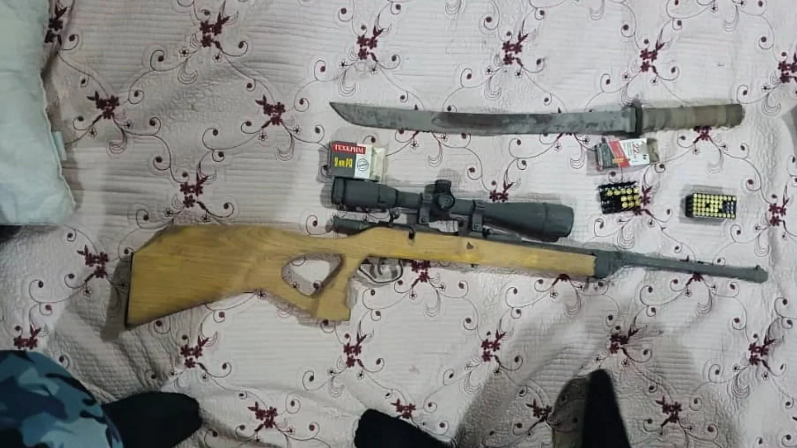 Далее, по адресу проживания гражданина Д.С.С. с использованием служебной собаки, были изъяты 4,6 килограмма гашиша, две гранаты РГД-5, самодельное огнестрельное оружие, 51 патрон, а также 2 тысячи долларов и 87 тысяч сомов.