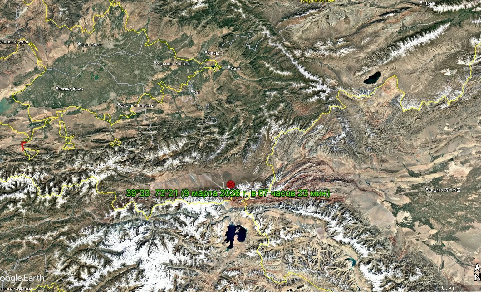 Сообщение о землетрясении на границе Кыргызстана и Таджикистана поступило от Института сейсмологии...