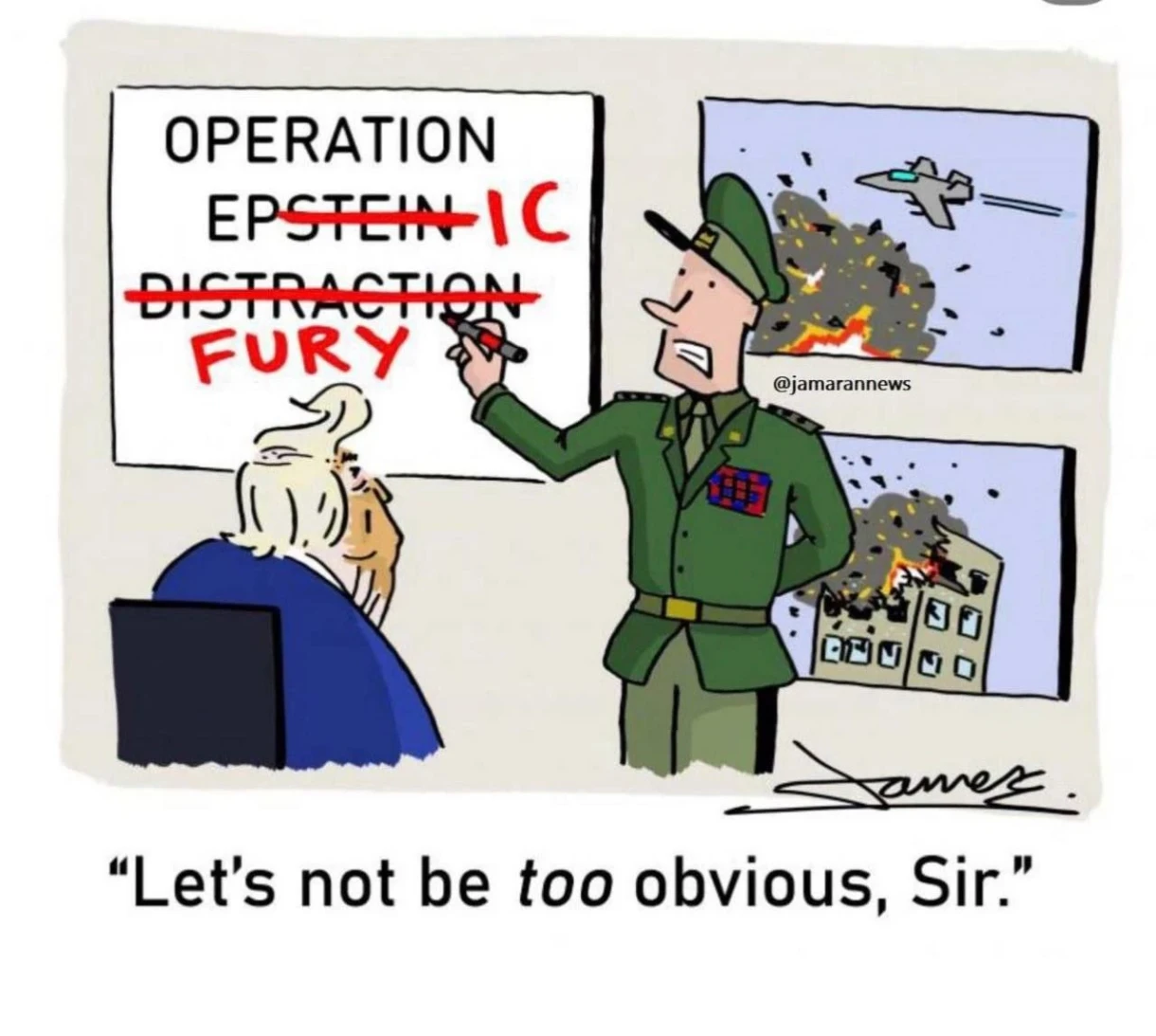 Посольство Ирана в Лондоне разместило карикатуру, утверждающую, что американо-иранские атаки служат прикрытием для скандала, связанного с так называемыми файлами Эпштейна.