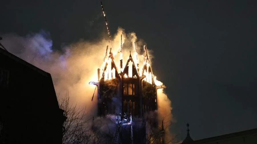 По прошествии двух часов с начала возгорания произошёл обрушение верхних частей церкви. В ответ на ситуацию уровень тревоги был повышен до региональной катастрофы Grip 2, что позволило привлечь...