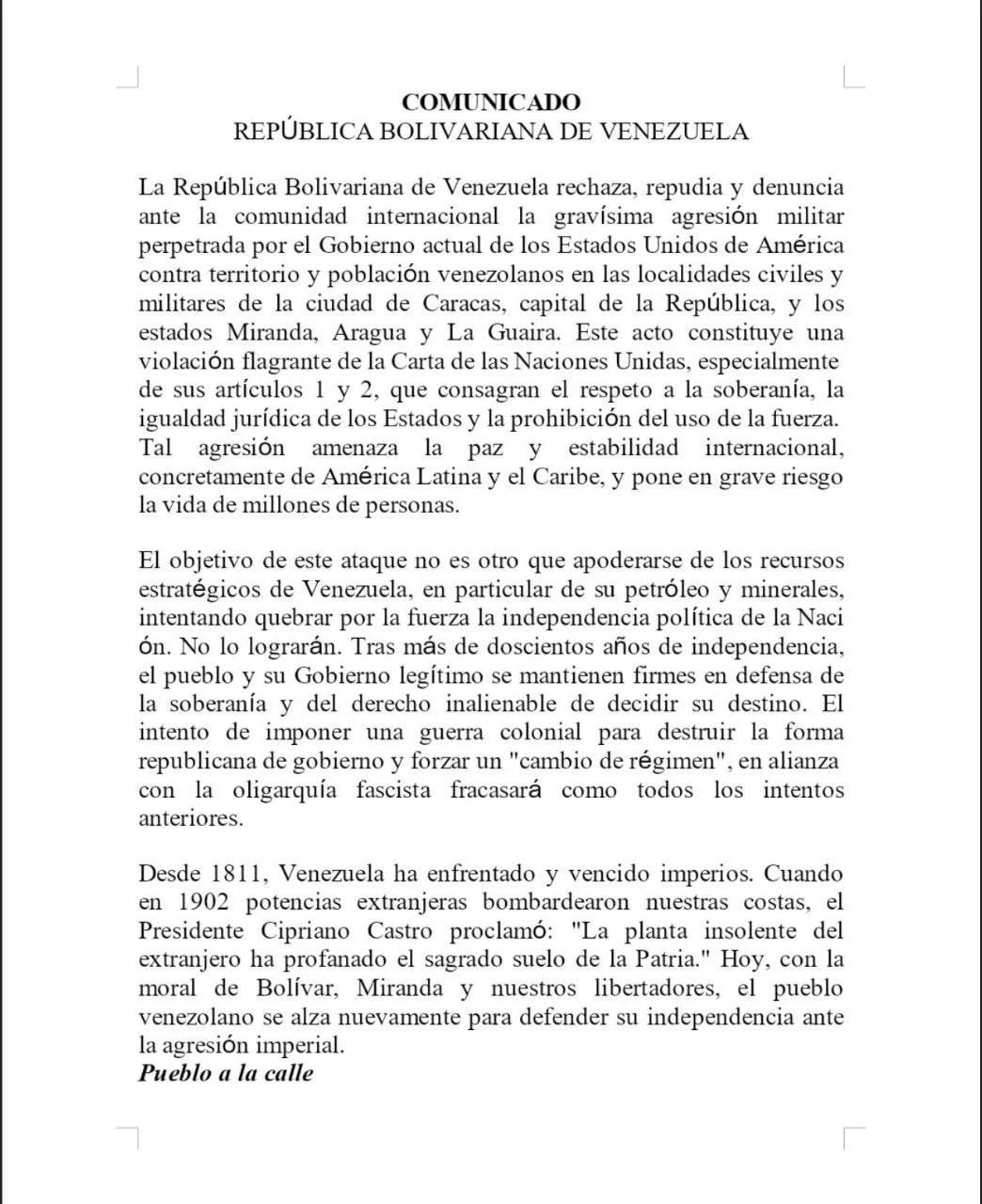 По словам Мадуро, действия Соединенных Штатов направлены на «захват стратегически важных ресурсов Венесуэлы, включая нефть и минералы», а также на «разрушение политической независимости государства...