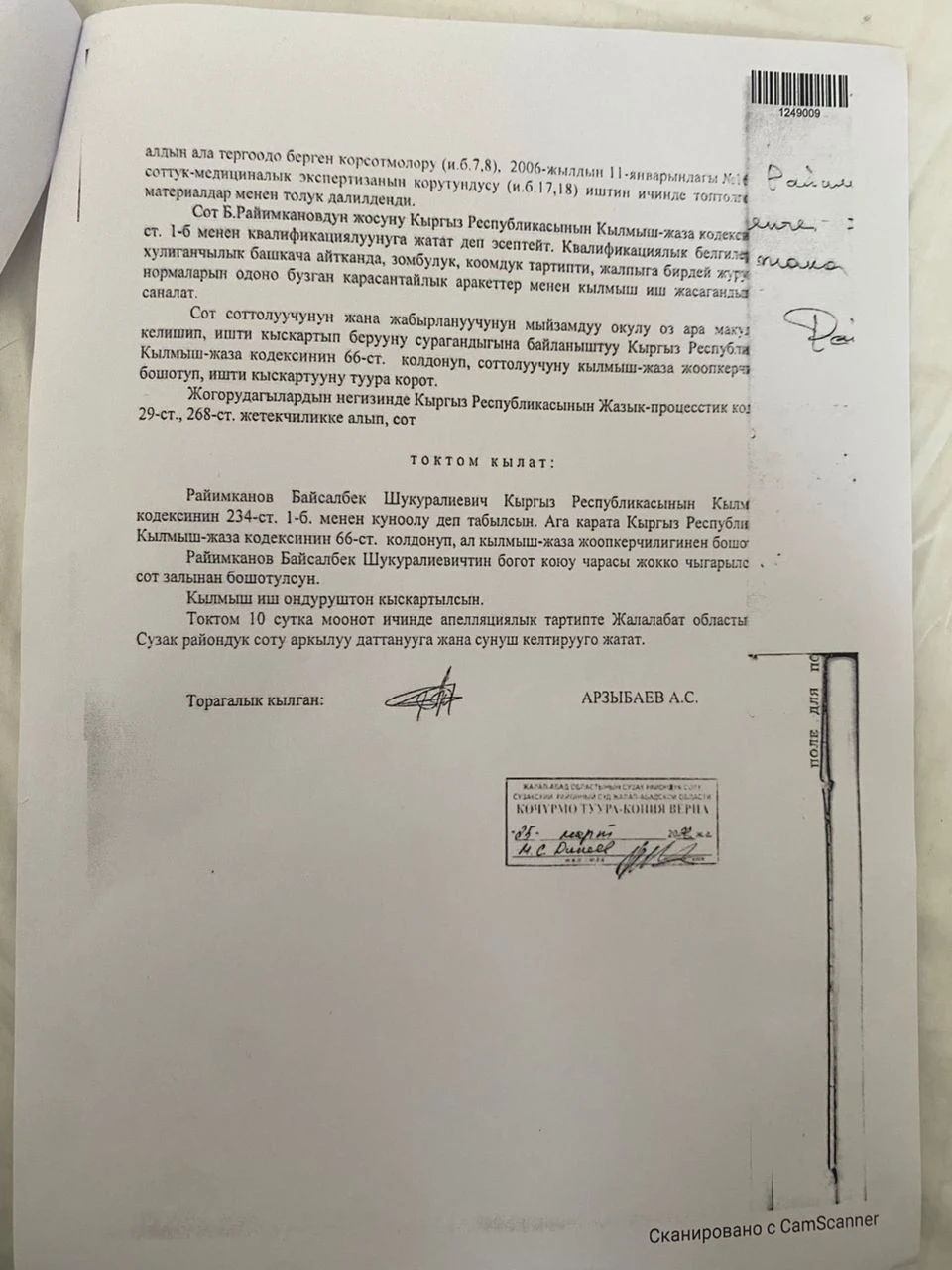 Аймеерим Омурзакова обратилась к властям с просьбой взять под контроль данное дело, обеспечить объективное расследование, безопасность своей семьи и отстранение подозреваемого от должности на время следствия.